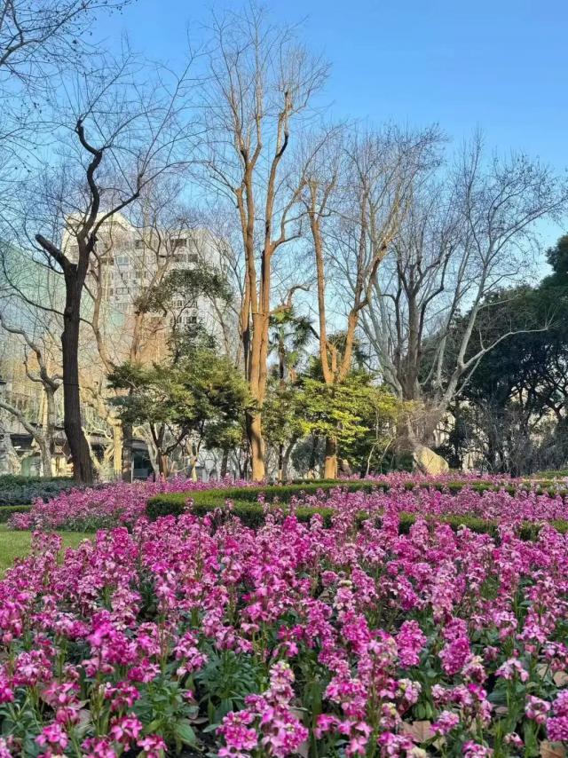 在晨露的微芒中,紫罗兰释放出淡淡的香味,交织成一首沉默却醉人的诗。当阳光透过稀疏的云层,光影交错,时间似乎放慢了脚步。在这片绚丽的花海中,市民和游客三三两两地散步,享受下午的闲暇时光。