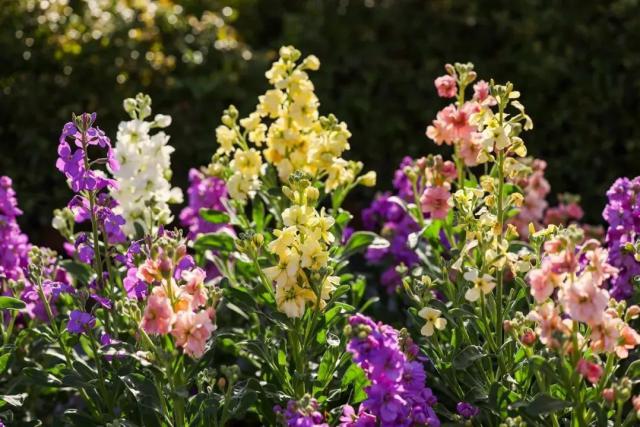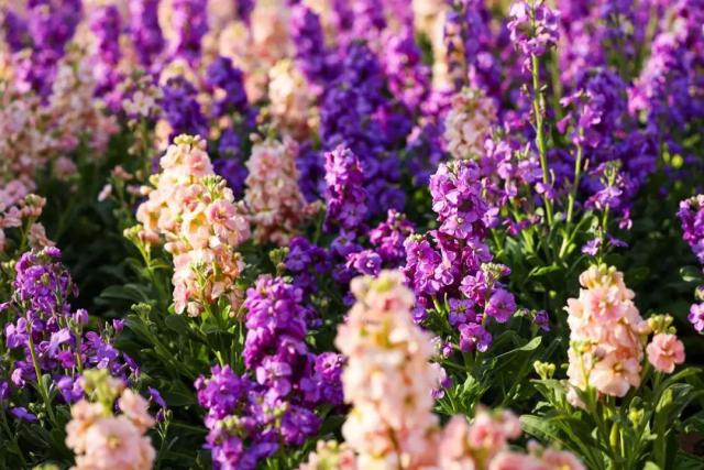 在温暖的阳光下,花园里的紫罗兰轻轻摇曳,与微风同舞。在这片绚丽的花海中,白色和粉色的花朵清新地点缀着它们,就像调色板上不经意间散落的颜料一样,以其独特的方式悄悄地向每一位游客讲述着春天的故事。