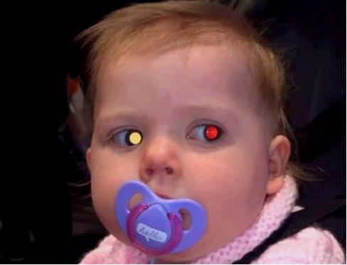 假如照片中每个家庭成员的两只眼睛都有红点,只有婴儿的一只眼睛有红点,这说明有些不正常。