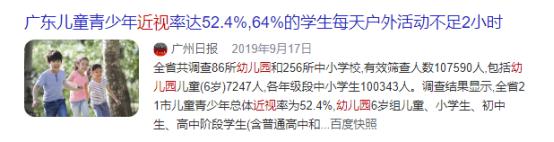 根据调查,广东已有儿童青少年。 52.4% 大家都戴着眼镜。