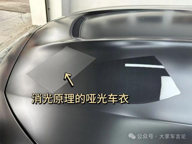 这是一件采用消光原理的哑光车衣。它的磨砂层添加到车衣表面,感觉粗糙,容易脏,难以打理。而且消光原理的哑光车衣几乎没有质感,看起来质感会稍微差一点。