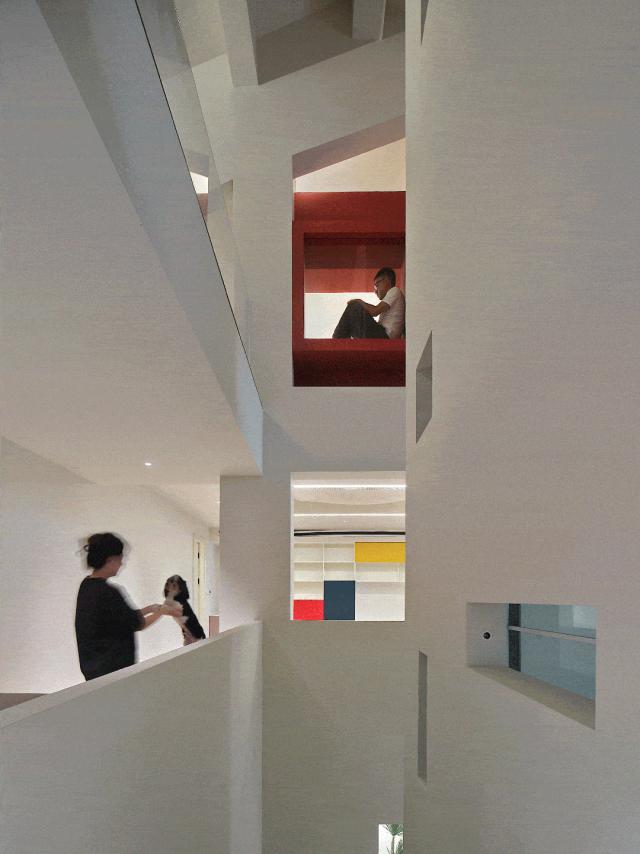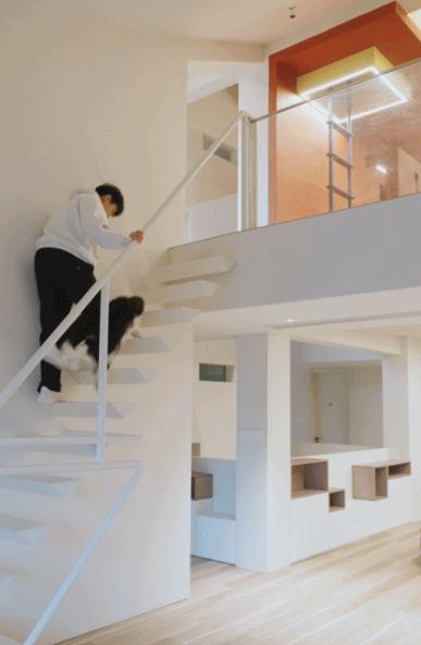 事实上,整个房子大致可以分为两部分。一楼和二楼的动线使其更加自由。这是一个公共空间。三楼和四楼实际上是家庭的一部分。