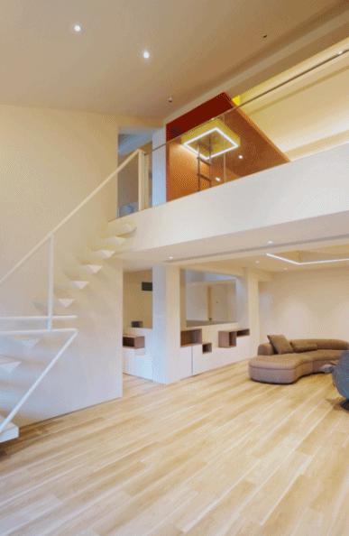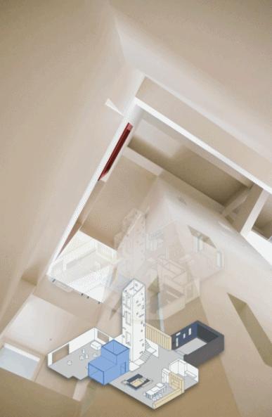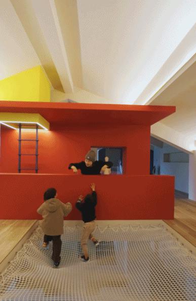 阁楼重新组织结构,围绕核心筒形成动线,地板清空绳网