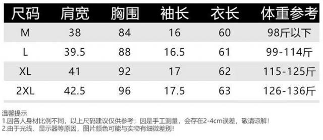 为了满足各种身材需求, 4 个尺码:M、L、XL、XXL,适合 98 斤以下、98-136 姐妹们穿着一斤。
