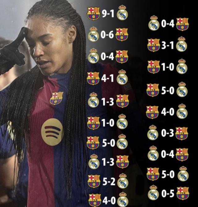 皇马再次遭到巴萨的无情蹂躏:女足0-5屈辱 19次交锋全输 狂丢78球
