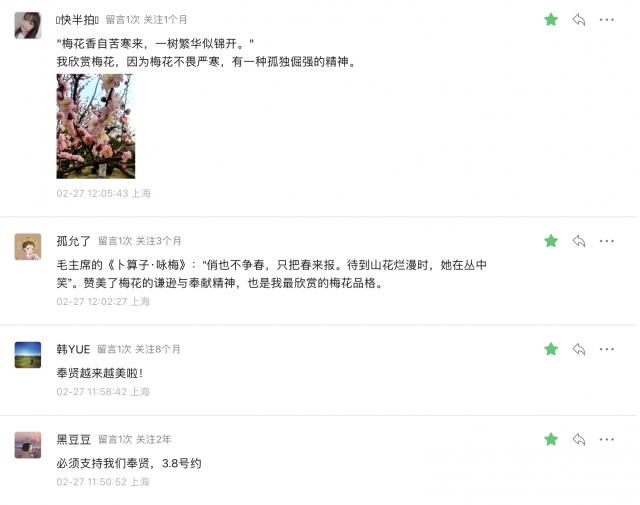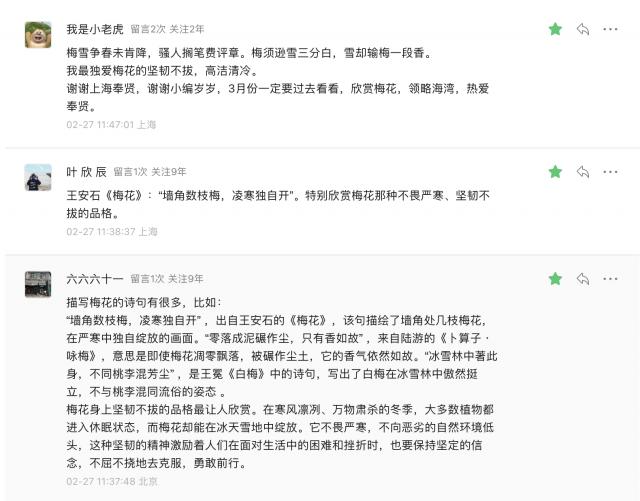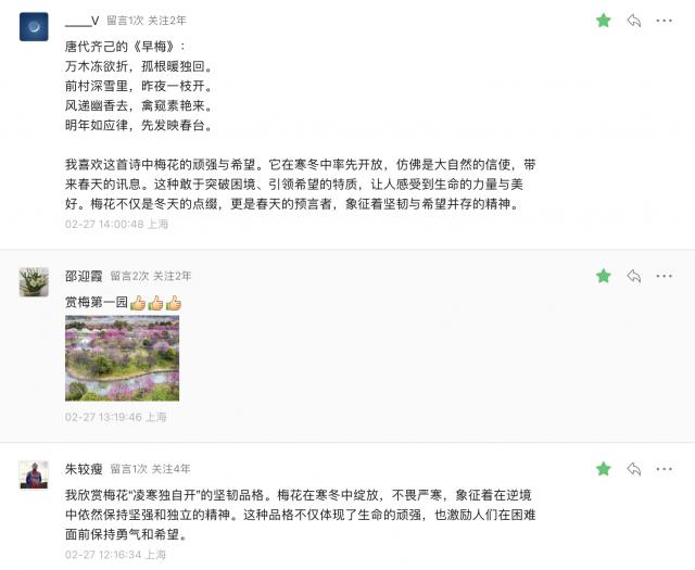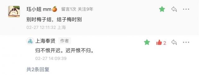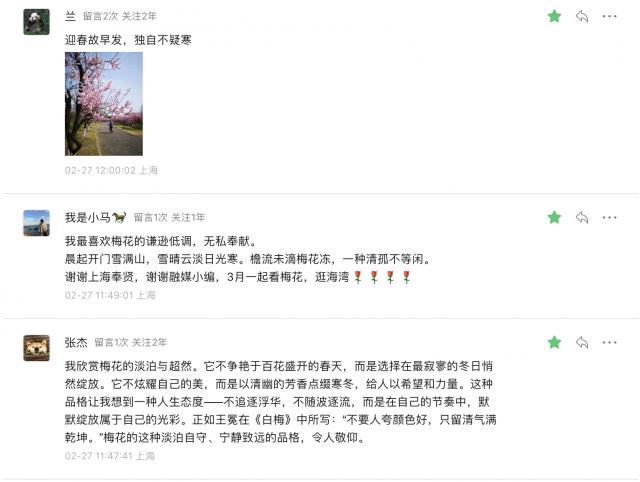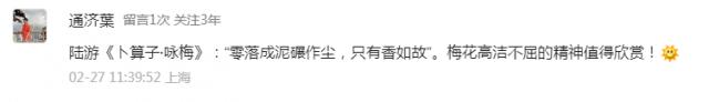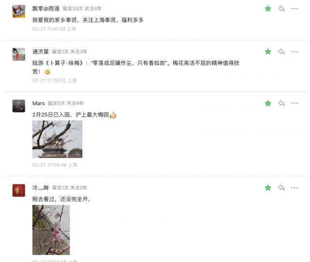 日前,我们发布了一条“小编为您送票!奉贤这儿梅香四溢,一键解锁春日高级朋友圈。→》,岁月让大家在评论区留下梅花的诗句,以及你喜欢梅花的性格。这几天,我们在后台收到了很多。有趣,有才华,有材料评论,简直比文字更精彩!现在来一波评论区域大放送,看看你是否被“翻牌”了?