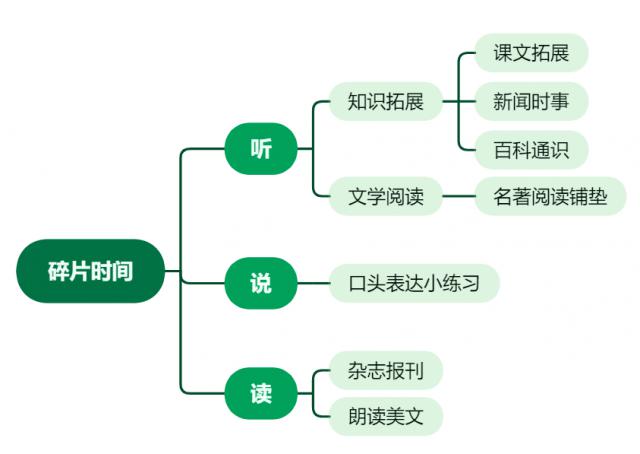 一般而言,语言学习分为“听、说、读、写”四个版块,写我就不考虑了啊,前三类其实都有很多适合碎片化时间安排的内容。