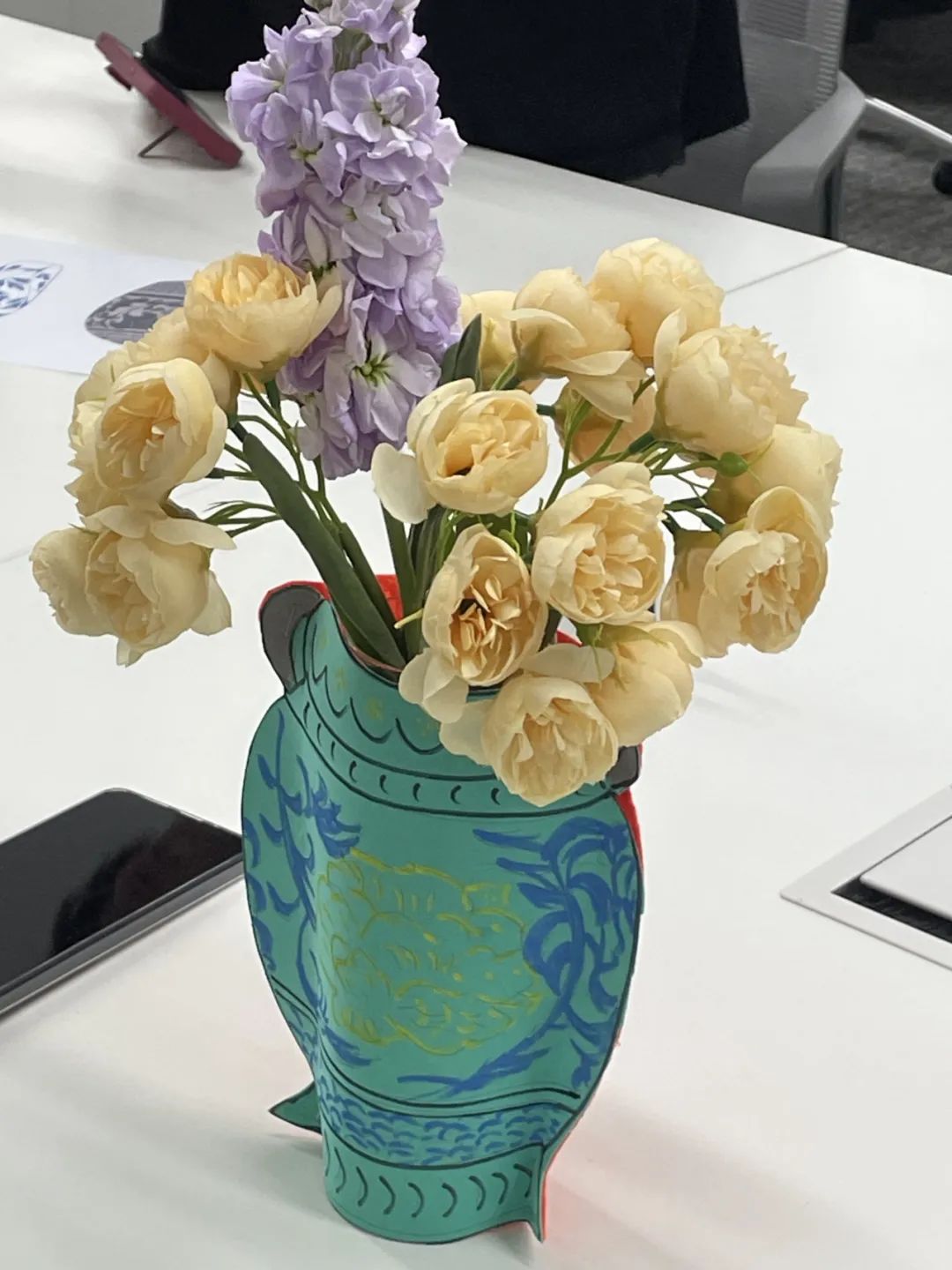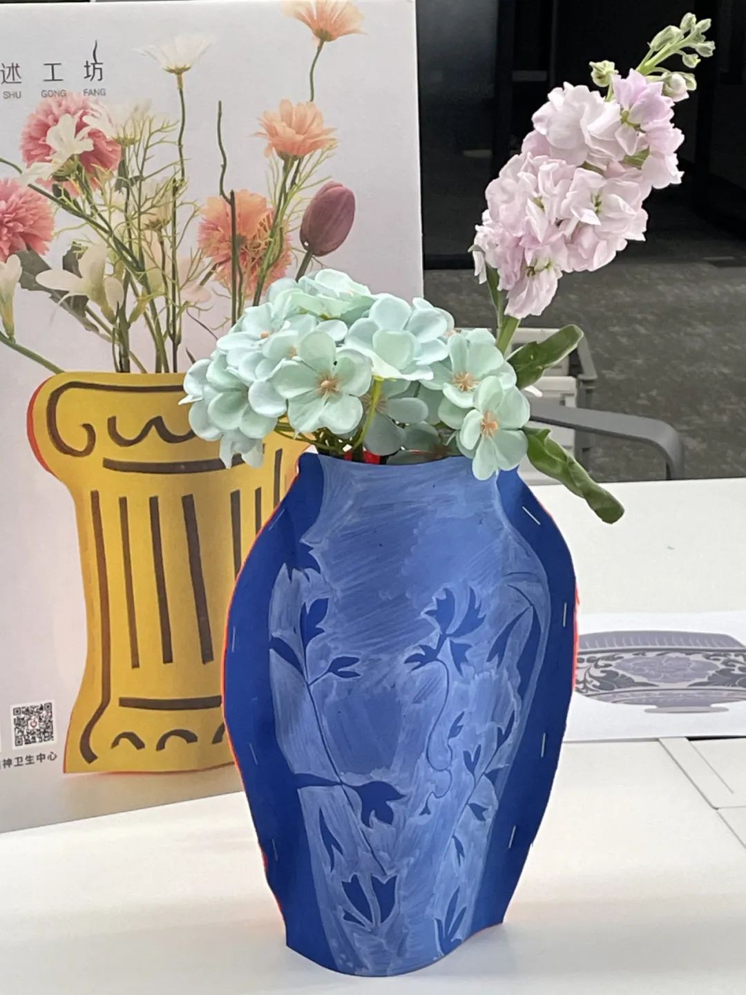 在现场,老师们带来了各种各样的制作材料,包括五颜六色的彩纸、精美的贴纸、小珠子和不同形状的花瓶图案。每个人的创作热情和想象力都被瞬间激发出来,他们都致力于“创意花瓶DIY”。