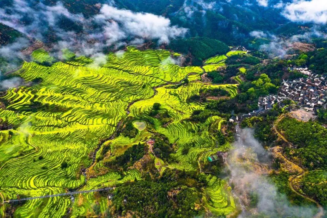 图片:春季万亩梯田油菜花在上饶邈岭。(来源:景点供图片)