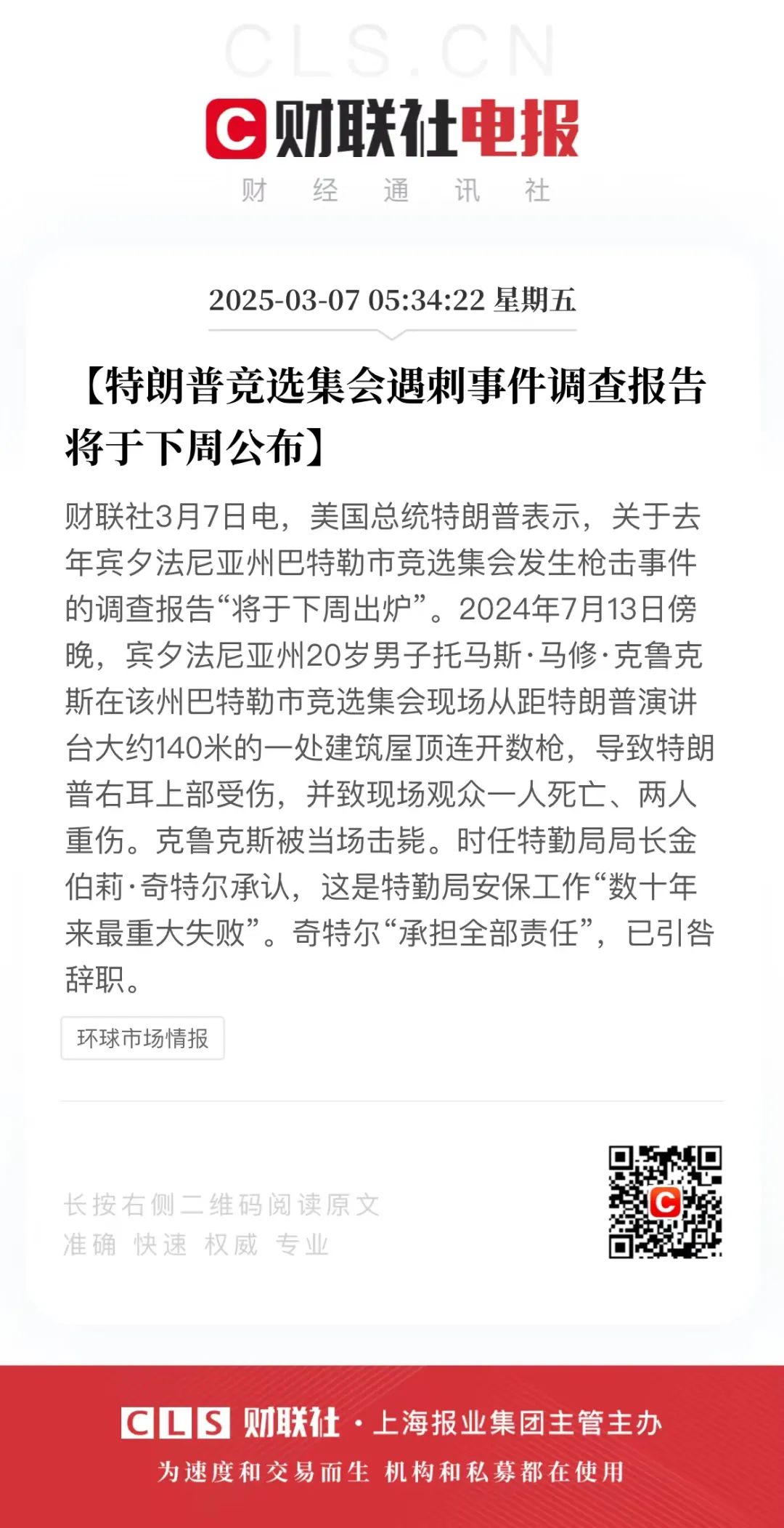 原题:特朗普竞选会遇刺事件调查报告将于下周公布。