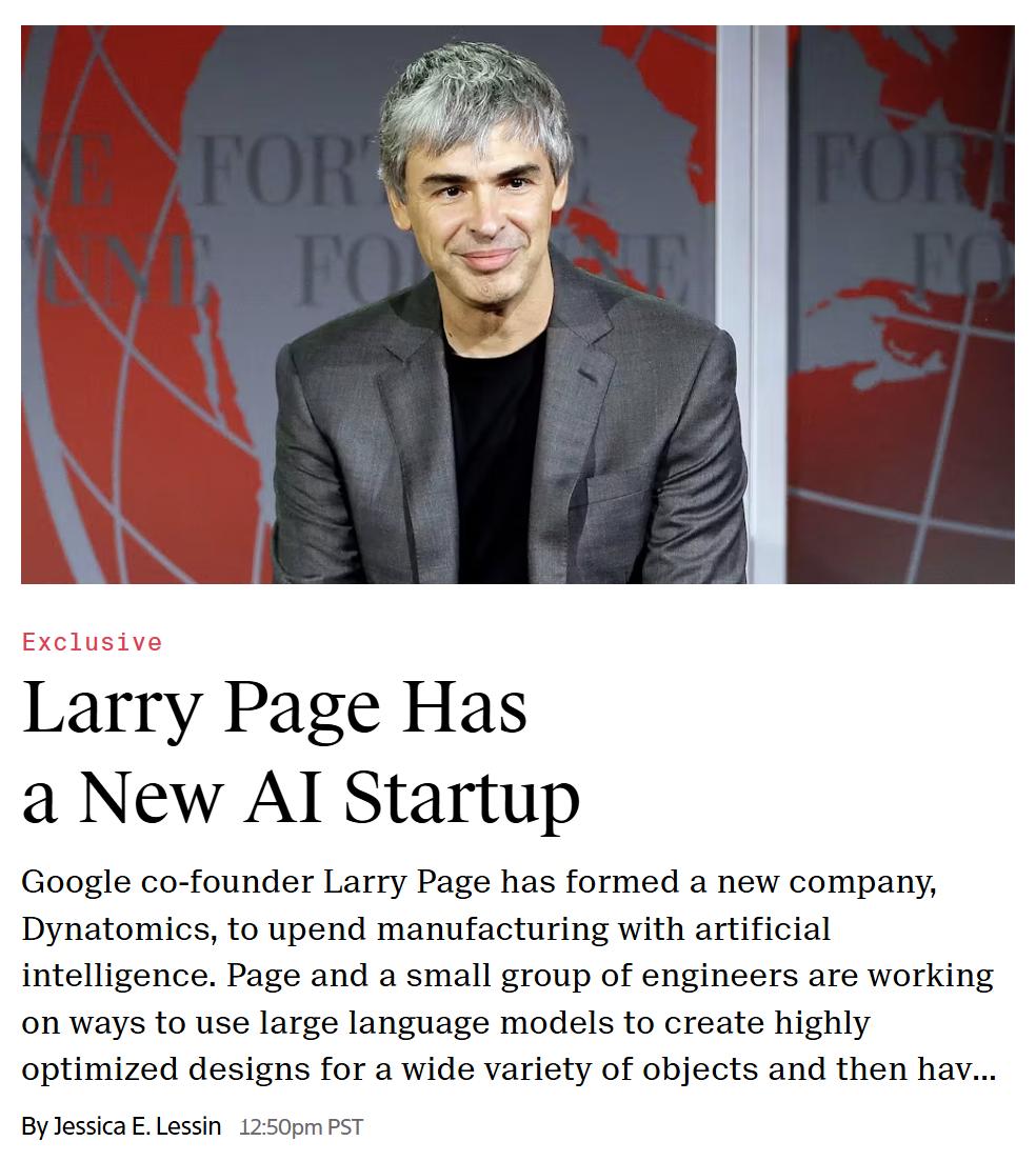 据外媒 The Information 拉里周四报道・建立了佩奇的名字 Dynatomics 创业公司,旨在用人工智能颠覆制造业。