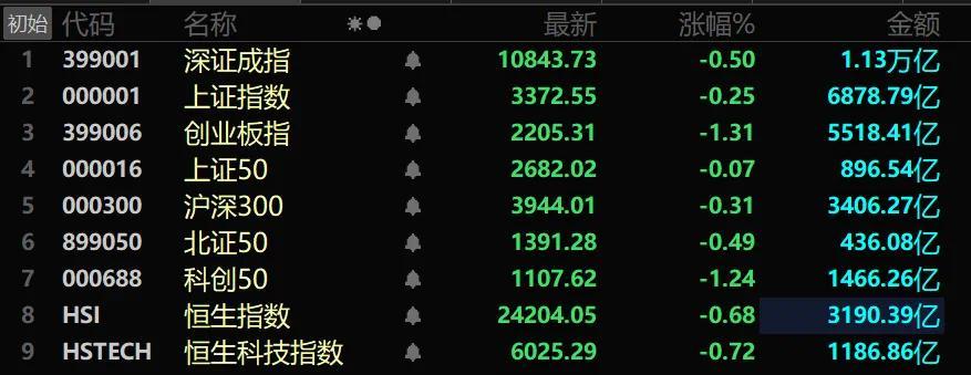 在港股方面,恒生指数和恒生科技指数也在下午大幅下跌。南向资金继续“买买买”,盘中净买入额一度超过100亿港元。