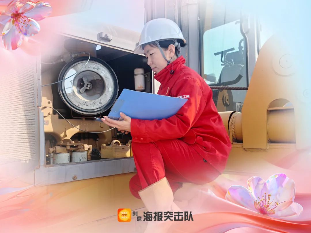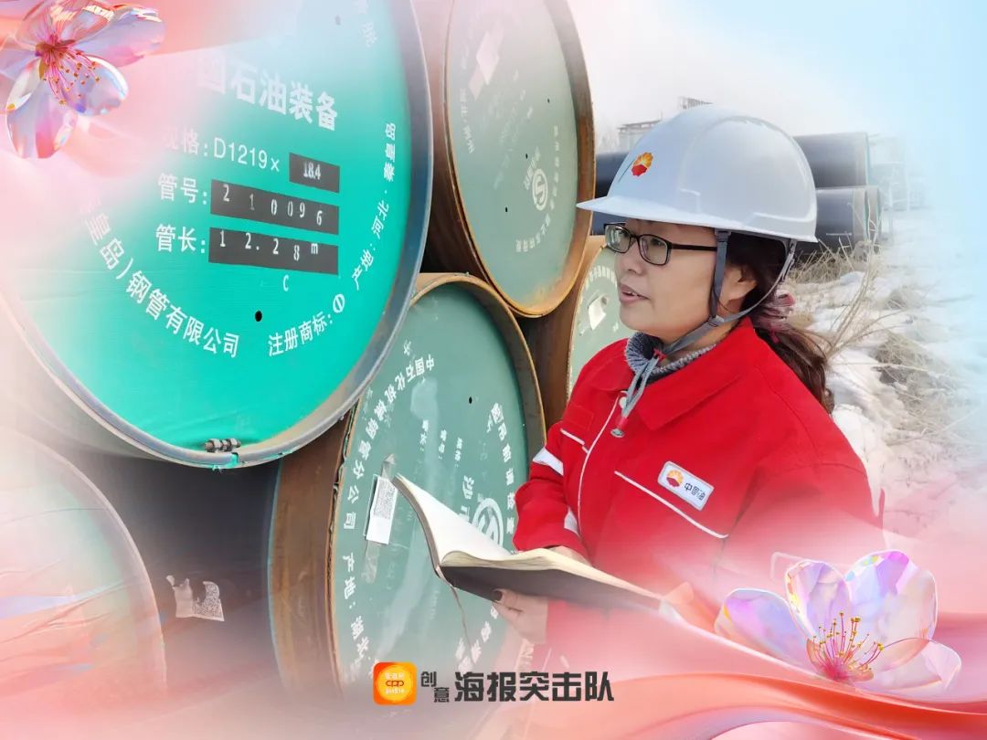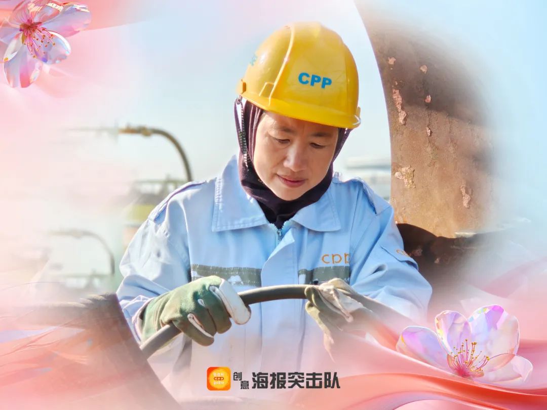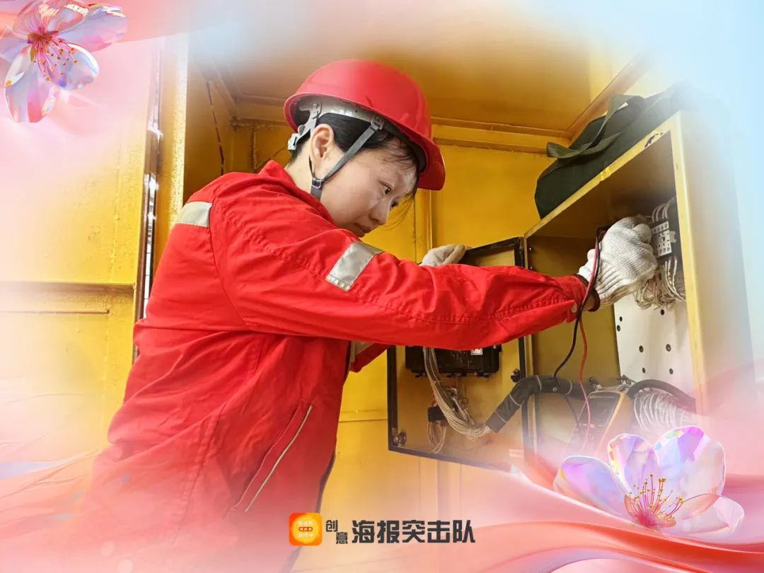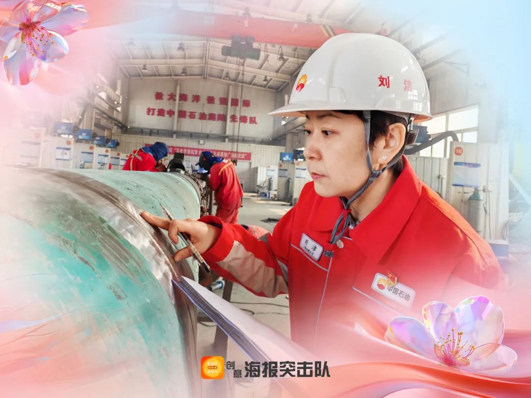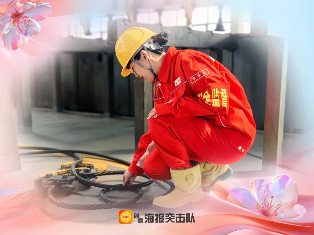 漂亮的管道女工,专注于工作,自信坚韧,就像春天温暖的阳光,照亮了工作的每一个角落。
