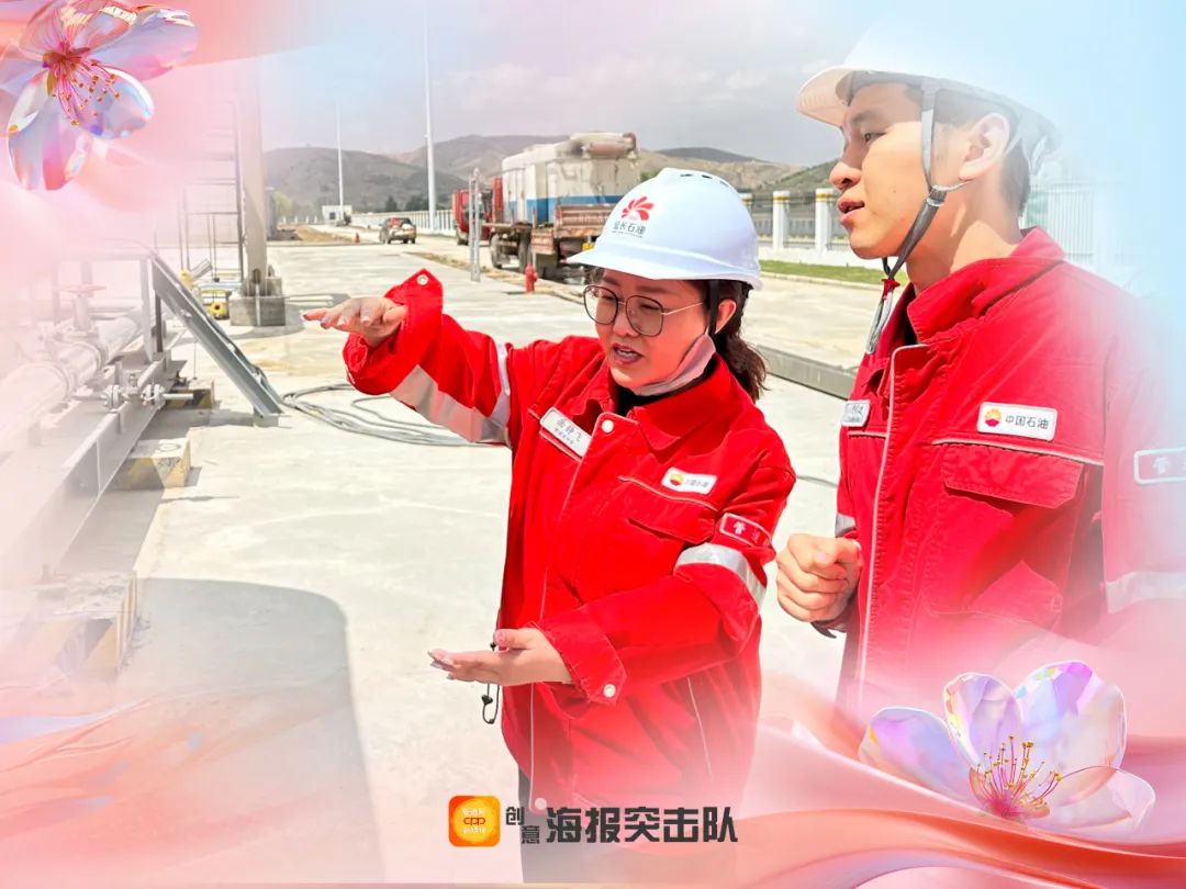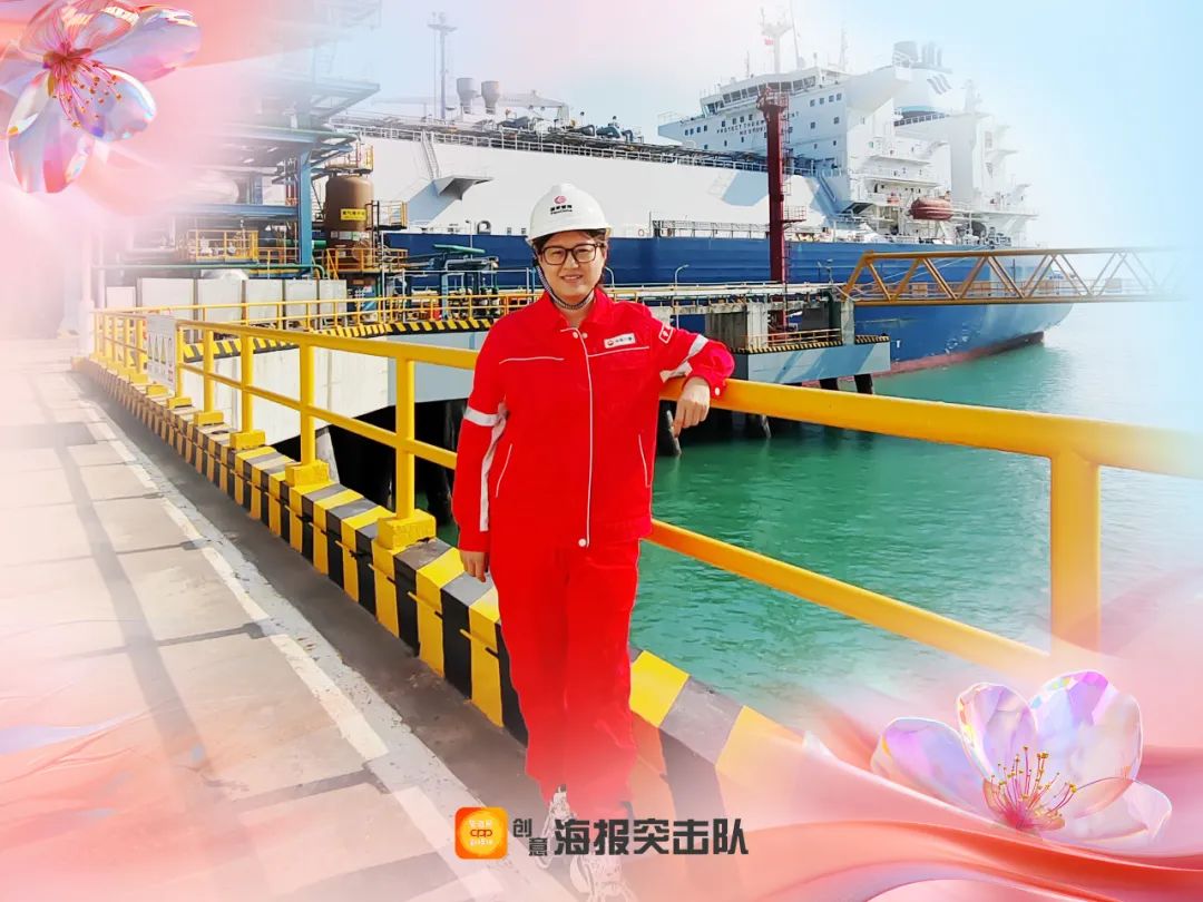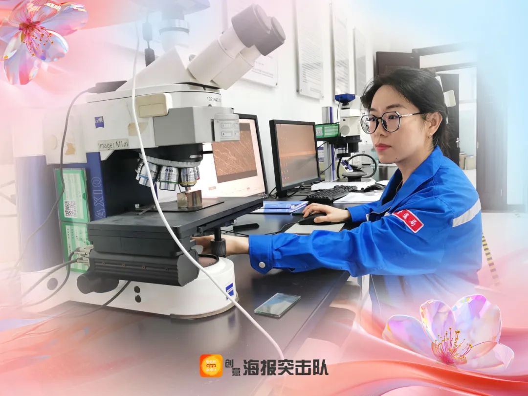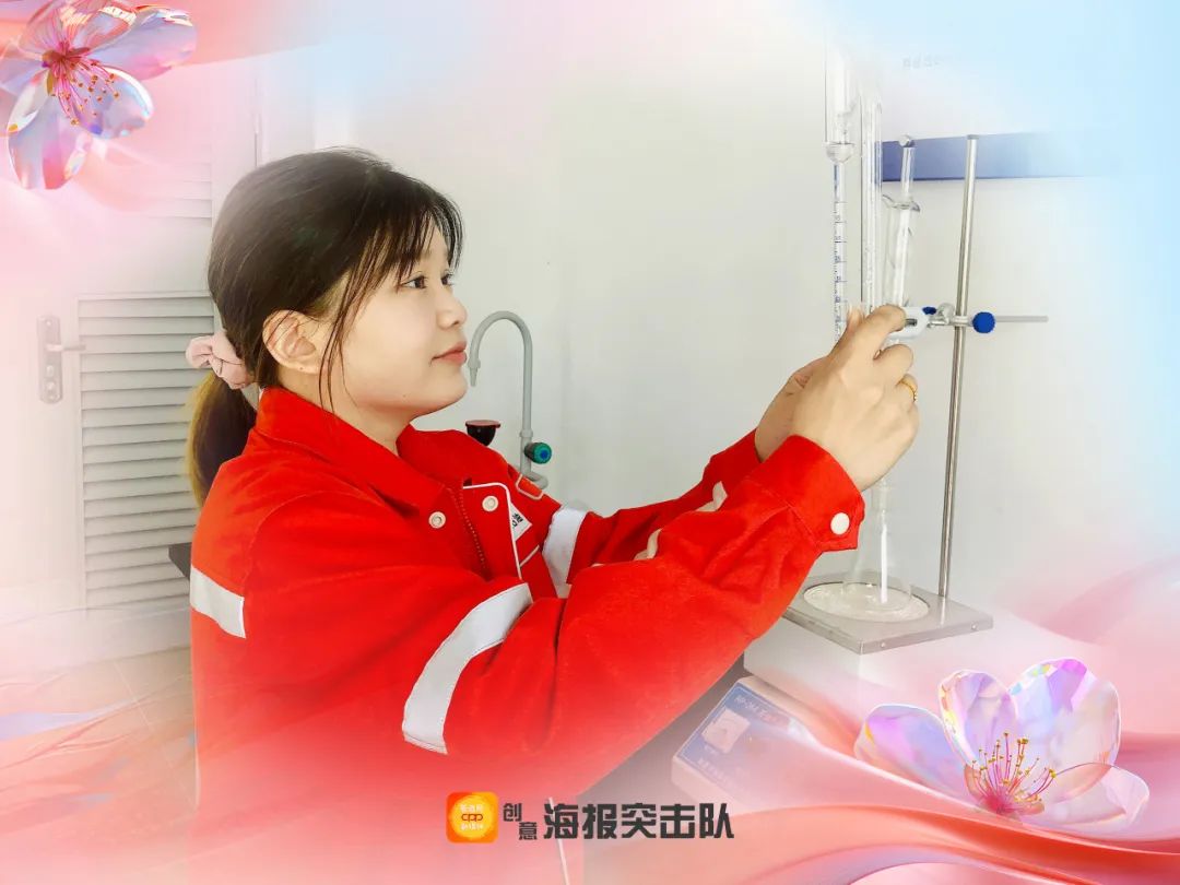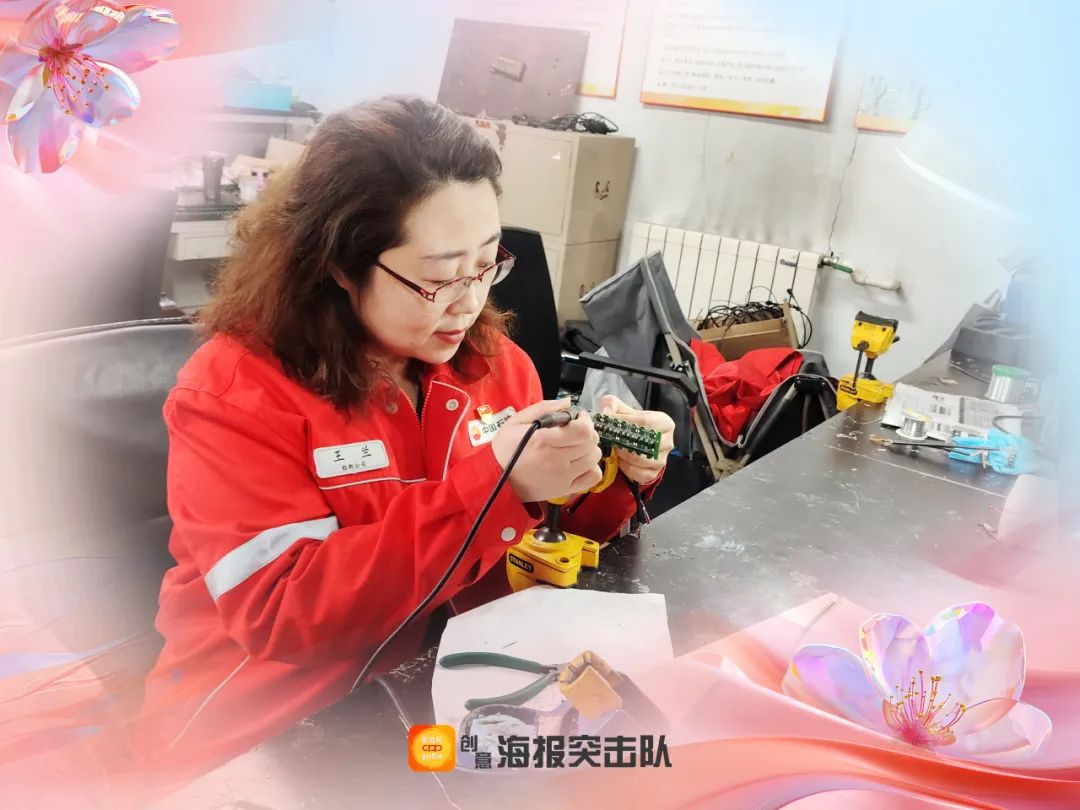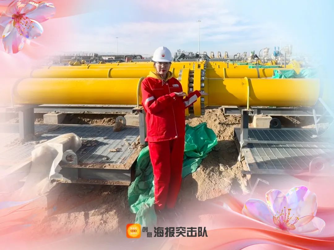 漂亮的管道女工,专注于工作,自信坚韧,就像春天温暖的阳光,照亮了工作的每一个角落。