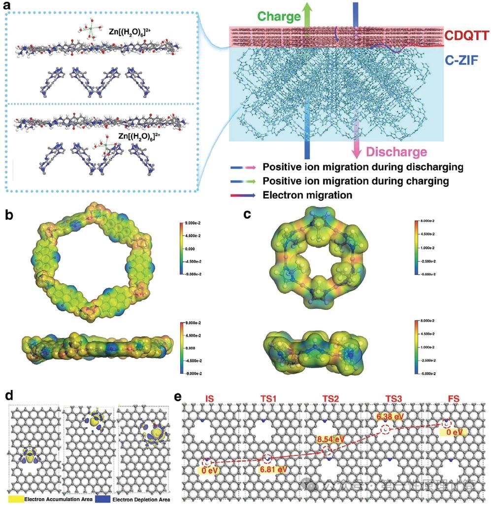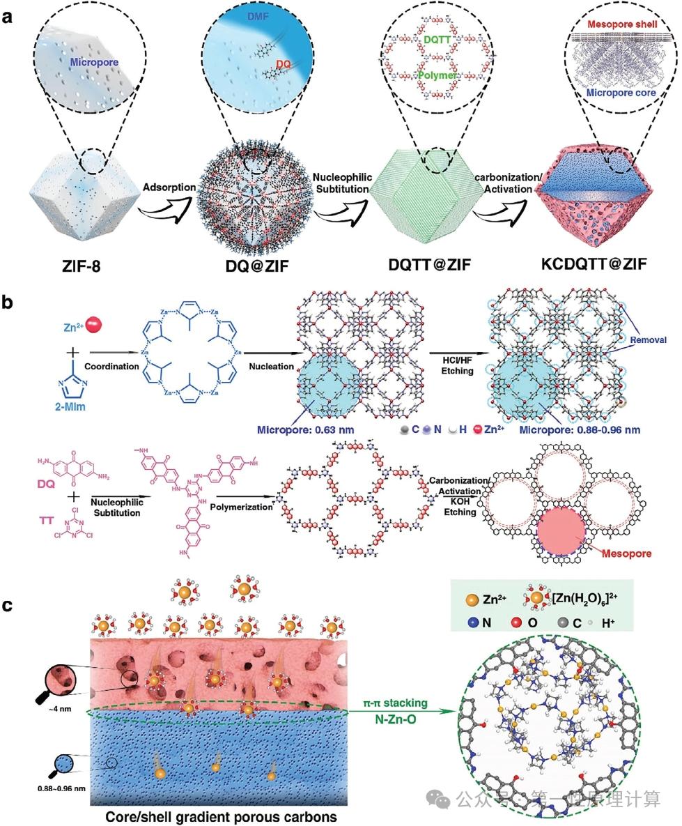 该研究开发了一种创新的梯度多孔碳超结构,具有增强电荷存储动力学,通过设计浓度梯度碳超结构,促进快速、定向离子传输和高效离子存储。提高微孔尺寸和介孔尺寸的梯度孔设计增强了水合锌离子的扩散,有利于Zn⊃2;⁺的储存。此外,N/O共夹杂减少了C-O-由Zn键组成的能垒提高了碳材料的不足密度和电导率,从而提供了伪电容。石墨化进一步提高了导电性和润湿性,而高比表面提供了大量的活性位点。ZHSCs采用这种梯度多孔碳超构造制备,503.6 W kg-1在功率密度下显示101.8 Wh kg-一是能量密度高,优于报告标准材料。还证实了超常充放电循环的稳定性,超过10,000次循环。该研究提出了一种有效的提高超级电容器电荷存储动力学的策略。