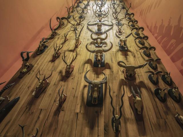而且最具影响力的还是那一面数米高、挂满偶蹄目(牛、羊、鹿)颅骨的木墙,展览项目名为“角争霸”,那种扑面而来的气势,只有站在前面才能真正感觉到。