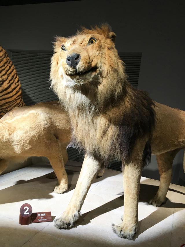 唯一的例外是“可爱的狮子”。它原本是一个男性非洲狮标本。因为标本制作时间长,面部表情不自然,但也是因为这个原因。魔性的表情过分拟人但在网上跳红,反而成了顶流网红。