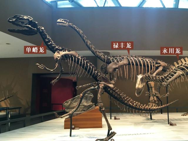 展览区的几个恐龙骨架 (图片:江鸿)▼