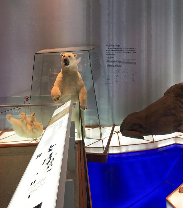 “极地探索”主题区的各种动物标本