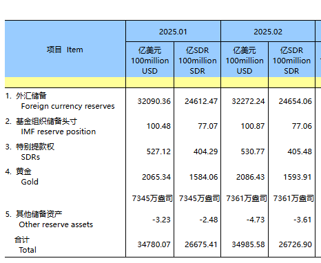 资料显示,截至2025年2月底,我国外汇储备规模已达32272亿美元,较1月底上升182亿美元,上升0.57%。