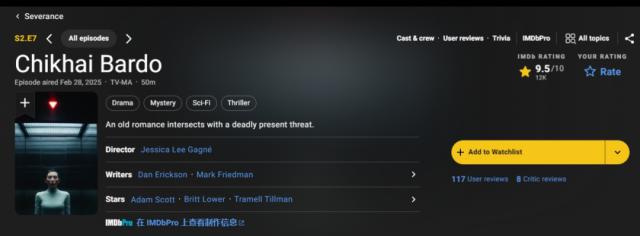 第二季第 7 集上线后,IMDb 得分直接飙升至 9.5 分。
