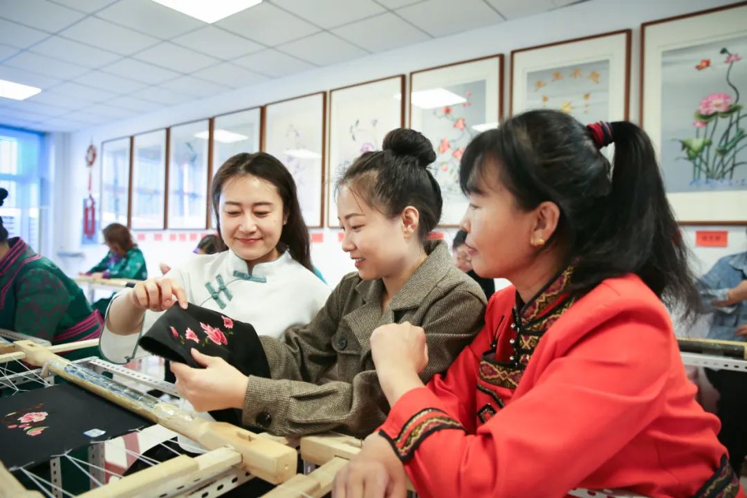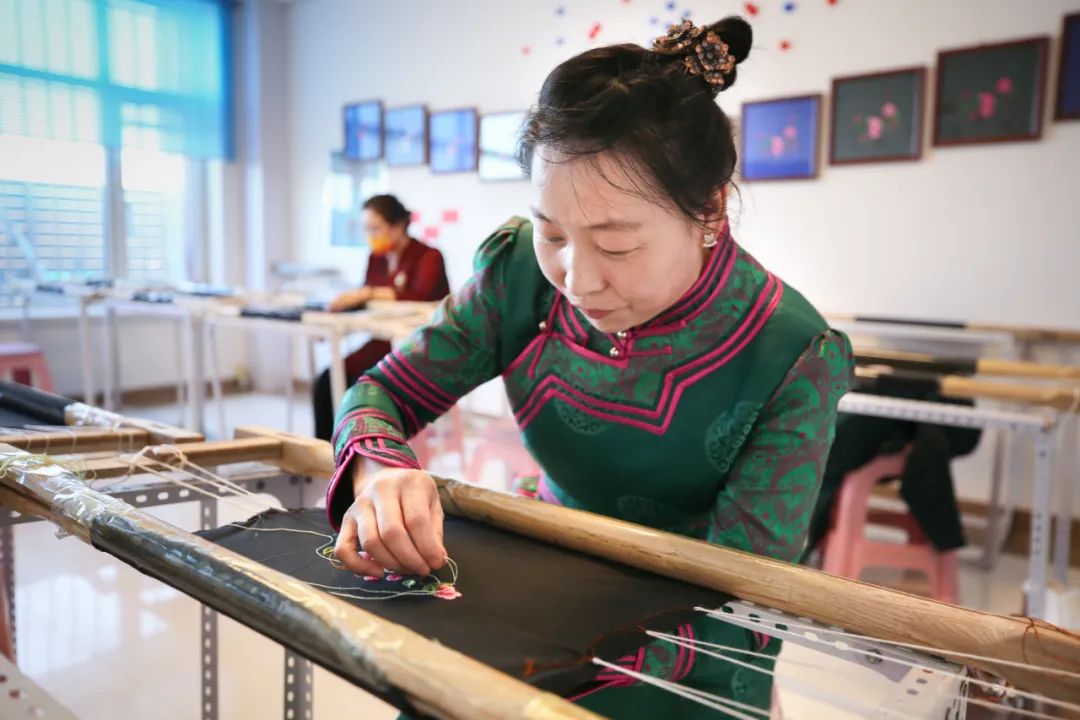 绣娘们,垂下的眉毛,飞扬的丝绸,都在诉说:最动人的绽放,从来不是一瞬间的青春,而是一首温柔的诗,一针一线的绣山河。此时此刻,他们低头低眉的态度,恰恰是文化传承最直的样子。