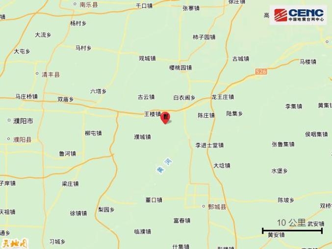 题目:河南濮阳地震突发!3.0级,震源深度14公里。