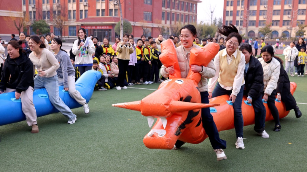 3月6日,山东省枣庄市中区东湖小学女教师参加“旱地龙舟”趣味比赛。近日,各地开展了迎接“3月8日”国际妇女节的丰富多彩活动。新华社地图