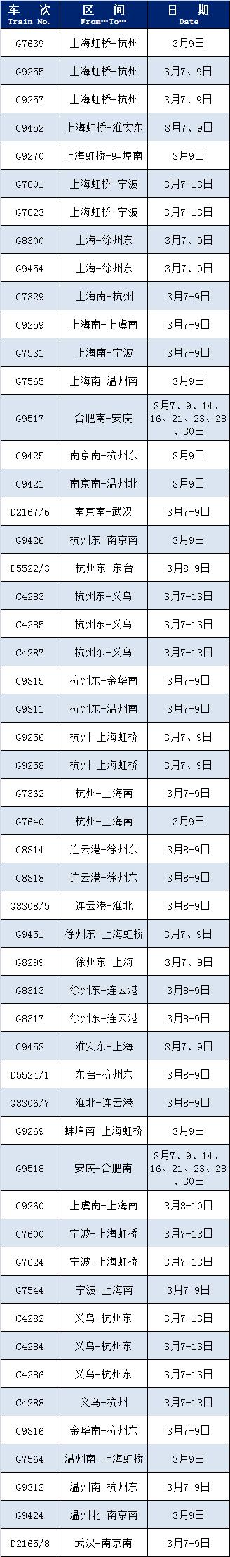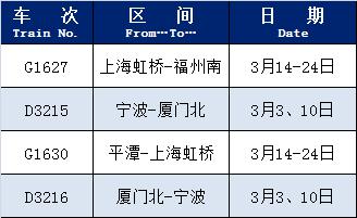 据上海铁路客户服务中心介绍,根据旅客出行需要,铁路部门恢复并增加了部分旅客列车,包括恢复列车。 G1627(上海虹桥) - 福州南)、D3215(宁波 - 厦门北)等,加开列车包括 G7639(上海虹桥) - 杭州)、G9255(上海虹桥) - 等等,快来看看有没有你想要的班次吧!详细说明↓