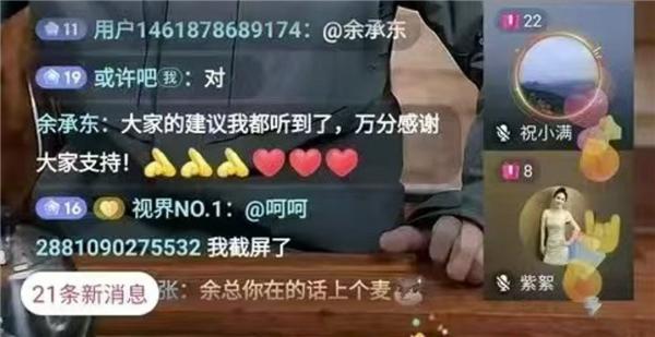 值得注意的是,昨晚的直播,晚上, 11 点多华为余承东出现在她的直播间,关注主播,并在网上表示感谢。