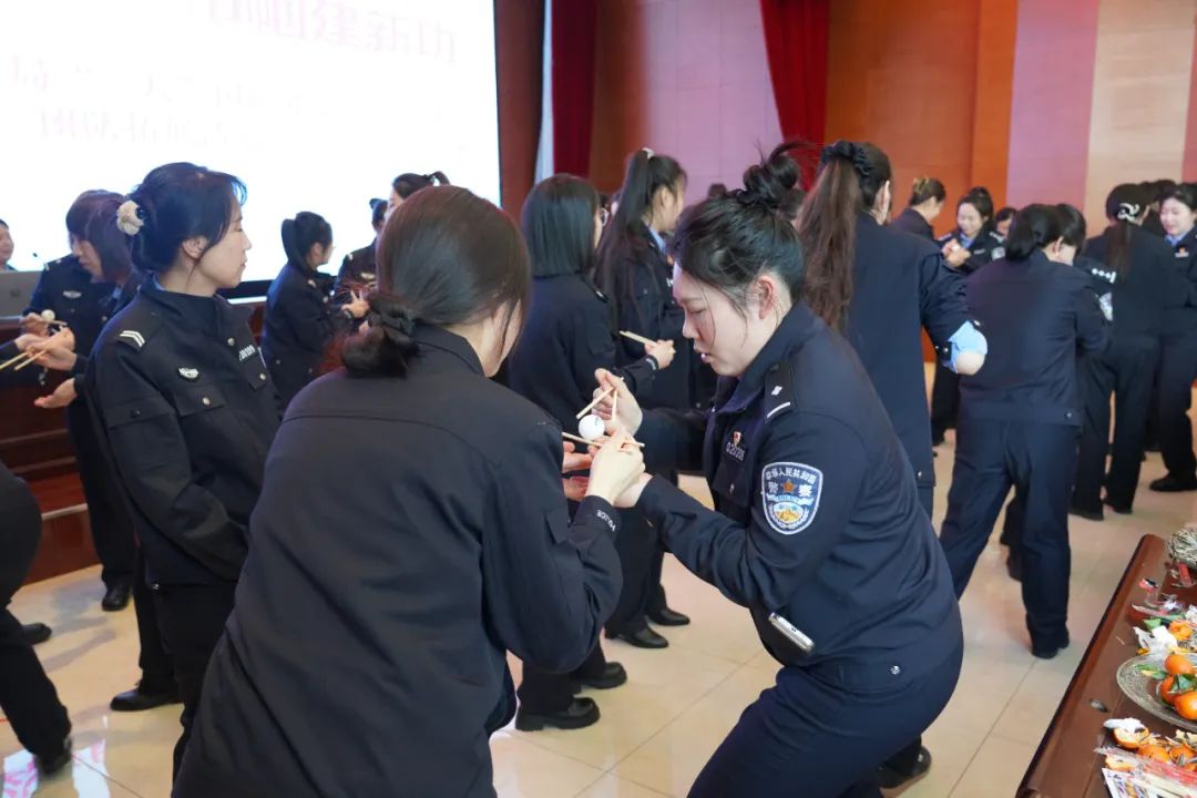 蛋糕制作完成后,女警再次投入到有趣的团队拓展活动中。该活动具有“阿凡提赶集”、“你比我猜”、“筷子夹球接力”、“抢水游戏”等特点,兼顾趣味性和合作性。活动期间,大家有时眼明手快,有时手脚并用,有时单兵作战,有时团队合作,现场气氛紧张热烈。活动结束后,参加活动的女警齐唱警歌,充分展现了长白山公安女警朝气蓬勃、积极向上、奋发向上的精神面貌。