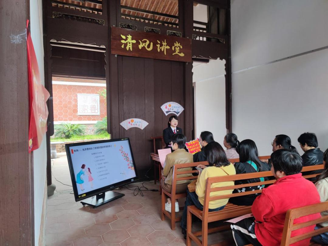 3月4日,在“3月8日”国际妇女节之际,涵江法院联合区妇联、农工党莆田市经济科技专业委员会前往涵江区江口镇东大村家风家训馆,开展“温暖人心、法爱万家”侨乡法律素养活动,促进侨乡法制建设,提高家庭调解员解决纠纷的能力,加强女性法律观念。
