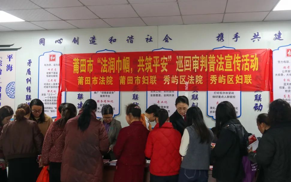 随着3月8日国际妇女节的临近,莆田市中级人民法院和市妇联联合在秀屿区平海镇海上枫桥调解中心举办了“法润妇女,共建安全”巡回审判普法宣传专项整治启动式。活动期间,莆田市中级人民法院与市妇联联合签署《莆田市普法宣传活动协议》,对普法宣传活动进行“法润妇女,共建安全”巡回审判,并现场开展法治宣传、法律咨询等普法宣传活动,促进妇女法治意识和观念的提高。