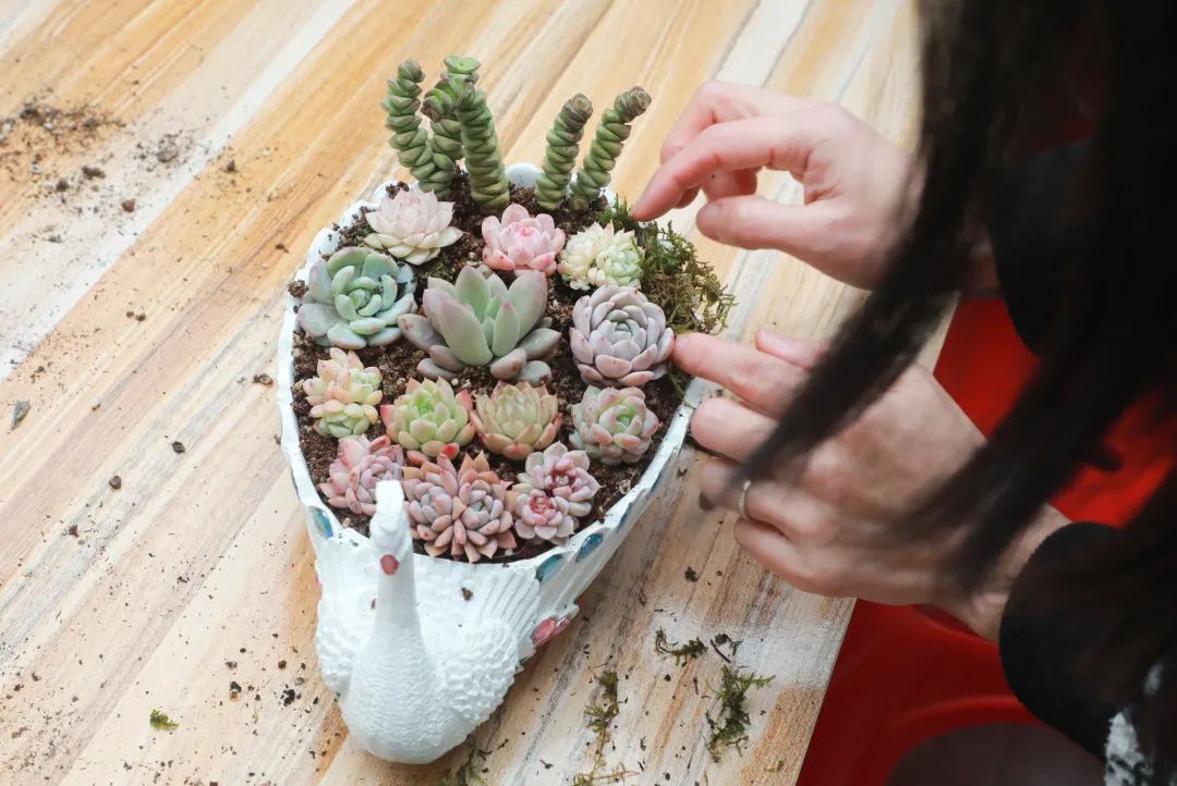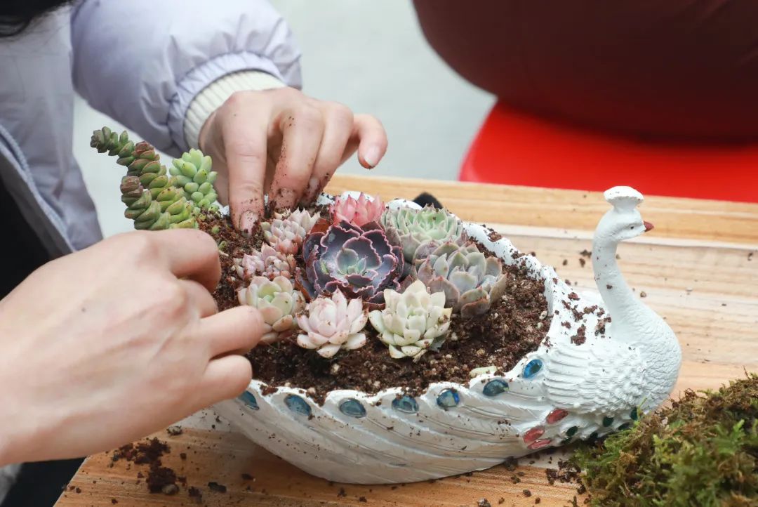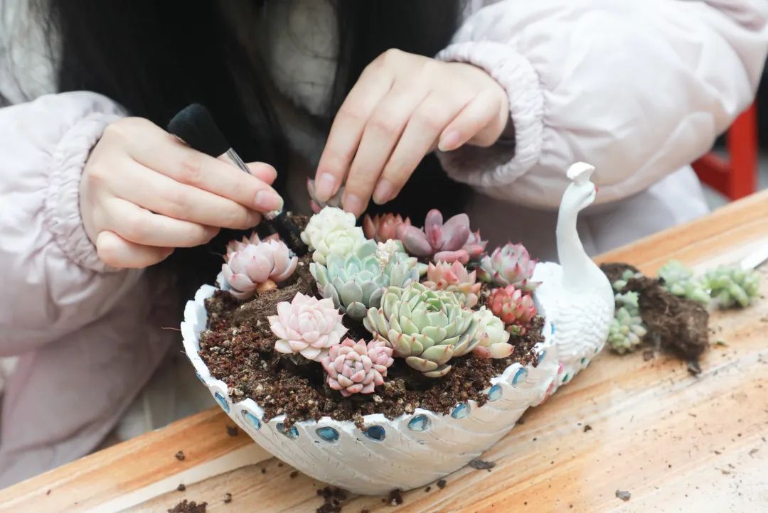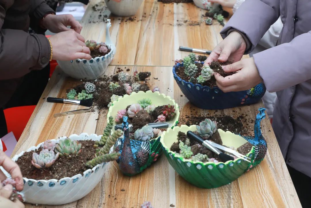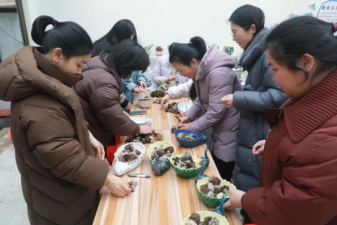 活动期间,花店介绍了今天种植的肉质品种,分享了肉质养护的经验,生动详细地讲述了种植肉质的技巧,从种植容器、土壤选择、肉质特性、日常浇水频率、换盆注意事项等方面。女警们聚在一起,充分发挥自己的创造力,结合花店的讲座知识,从肉质选材到插枝,根据自己的爱好搭配制作,享受手工制作的快乐。
