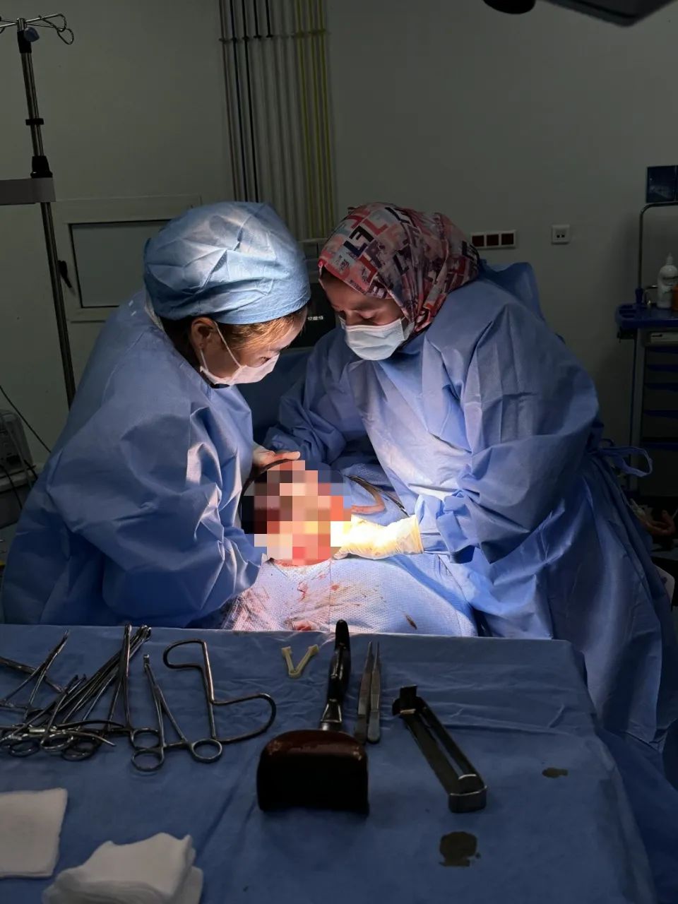 经过紧张的讨论,我们一致认为患者情况紧急,必须立即进行剖腹手术。李骏负责准备手术,监测患者情况。冯丽君和我用法语与护士沟通患者的病情、下一步的治疗方法和手术风险,然后护士用阿拉伯语复述给患者及其家属。