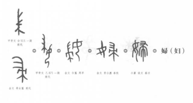 有学者认为这是一个男人打猎,女人种地的时代,所以甲骨文和金文里的“女人”就像一个女人在种地。“女人”旁边的“扫帚”不是扫帚,而是稻草扎根在田野里,穗歪了。