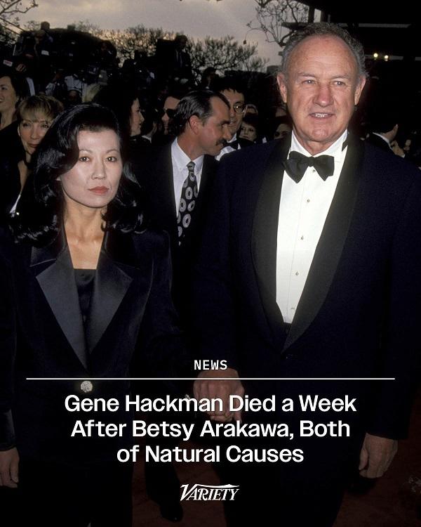 尸检数据显示,吉恩 · 哈克曼的妻子贝琪 · 哈克曼(贝琪) · 荒川)因感染汉坦病毒而死亡 2 月 11 日,以后 95 吉恩年纪大了 · 在地狱般的一周里,哈克曼独自一人,最终死于心脏病。