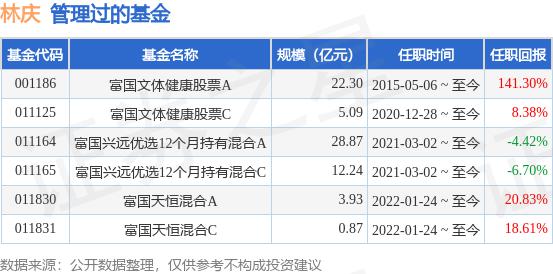 林庆先生:复旦大学经济学硕士,计算机硕士。 2011 年 2 月至 2015 年 5 2015年,月任富国基金管理有限公司研究员、高级行业研究员、 年 5 2021年,富国文体健康股票型证券基金经理,2021年起任富国文体健康股票基金经理 年 3 月起任富国兴远优选 12 个月持有期混合型证券投资基金经理。具有基金从业资格。