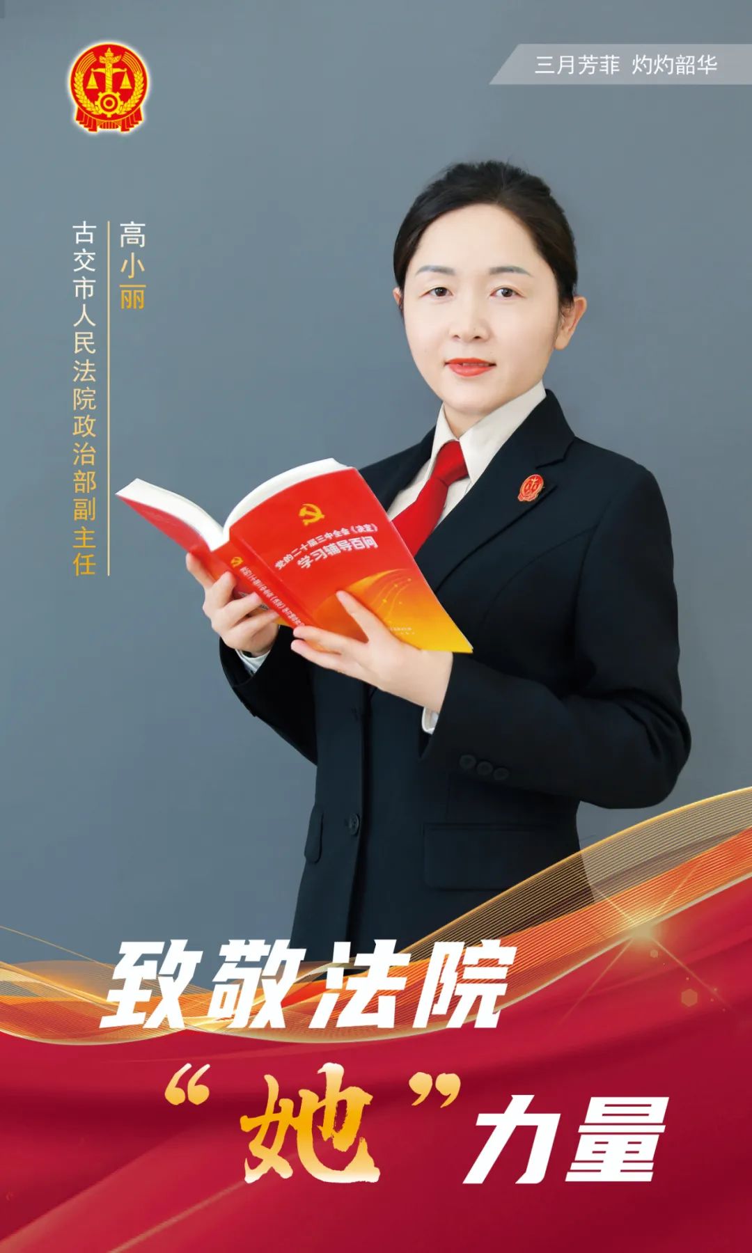 她以女性特有的温柔细致化解矛盾纠纷,展现了女性不让须眉的美丽风采,向群众传递了司法温暖和人文关怀,积极传播法治之光,努力驱散罪恶的痛苦,维护国家安全稳定,实现社会公平正义。只有这样,她才能不辜负头顶的国徽,不辜负胸前的平衡,不辜负前方的道路和漫长的道路。只有奋斗,她才能成长!