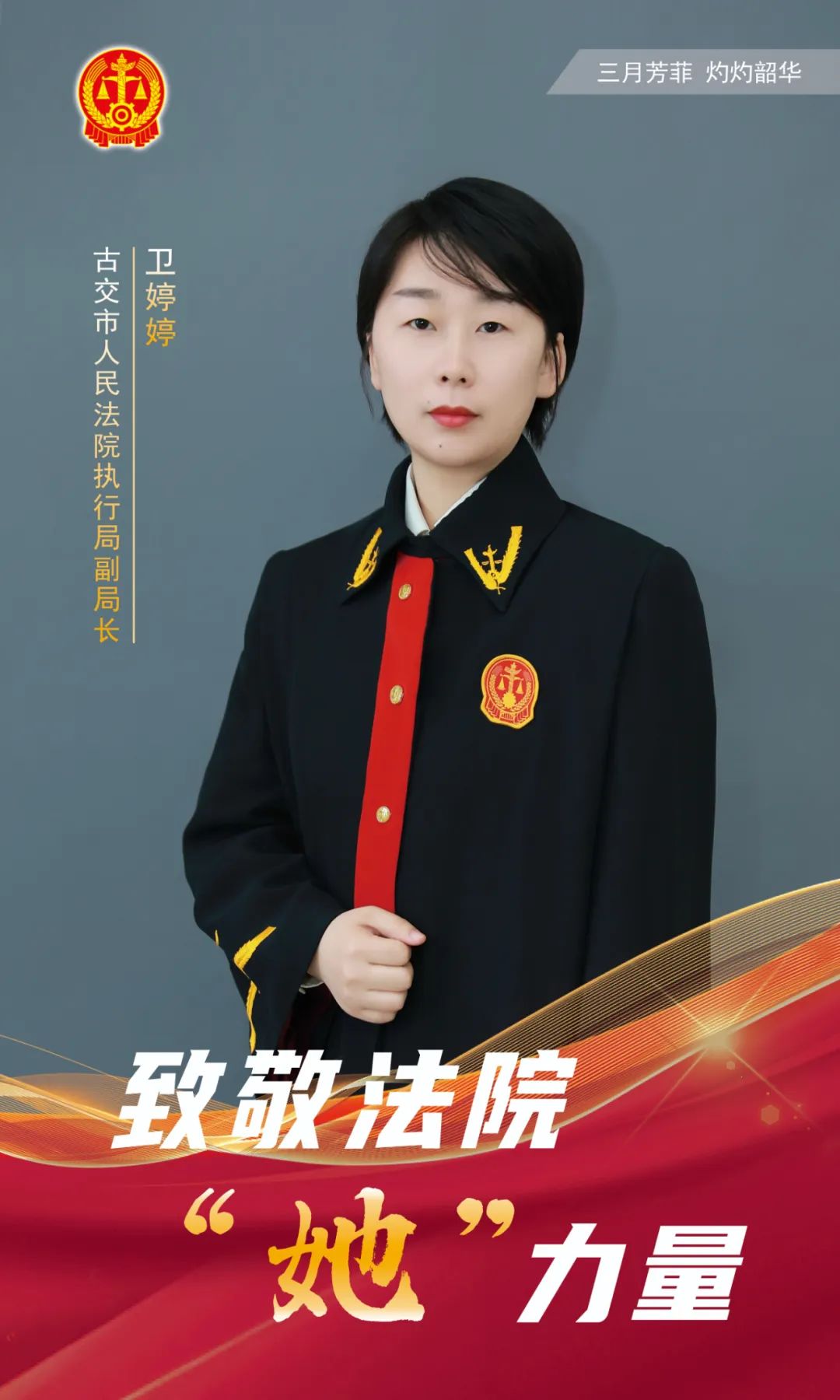 作为一名80后执行法官,她始终坚持公平执法,扬正气,尽职尽责地解决人民的后顾之忧。她的内心总是充满了对正义的执着追求,是惩罚邪恶道路上铿锵的玫瑰。她始终保持着强烈的事业心和责任感,认真对待每一个案件,要求高标准,努力练习内功,用实际行动让法徽更加闪耀。