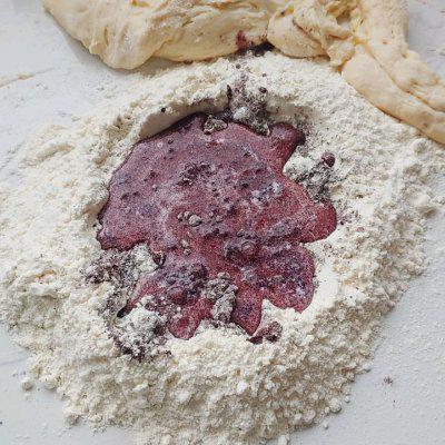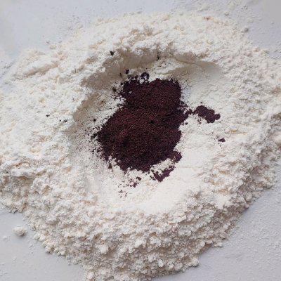 1、随意在面粉中加入一些巴西莓粉草莓粉。