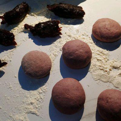 5、搓条下剂滚圆擀厚包上一些红豆沙或随意甜馅。