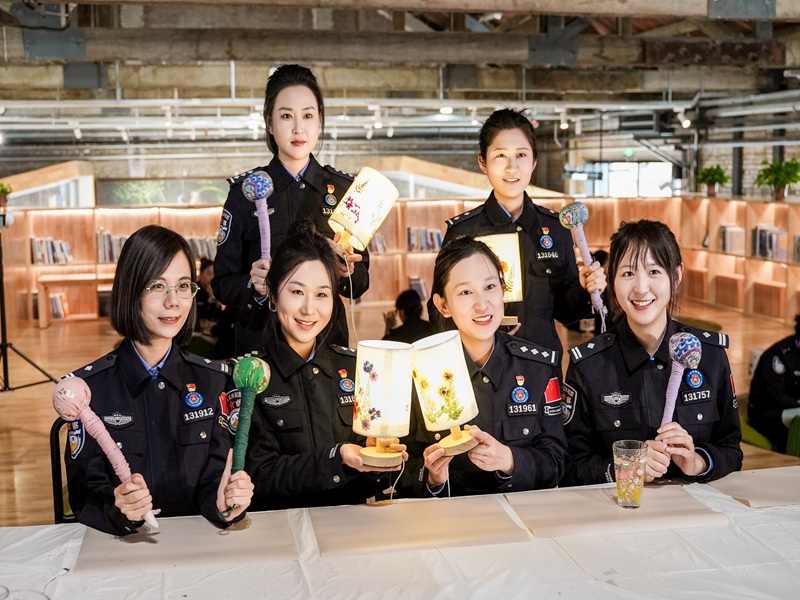 巧手匠心,绽放女性魅力。随后,备受期待的手工DIY比赛将活动推向高潮。现场设置了三个手工体验阶段:压花台灯、艾草健康锤、彩绘玻璃。每个人都化身为“聪明的工匠”,充分发挥自己的创造力和想象力,用心制作自己独特的作品。女警小心翼翼地选择干花材料,精心设计构图,将春天的气息封在灯盖上。随着压花台灯的亮起,每个人的脸上都露出了像花一样的笑容;放艾草包,捏球,包棉布,盘绕棉线...女警沉浸在感受传统中医文化的魅力中,很快,艾草香味的健康锤就完成了;画玻璃的阶段充满了笑声和欢笑。每个人都用五颜六色的颜料在玻璃上表达自己的创造力。每一件作品都充分展现了女警们的坚韧优雅品质和对美好生活的向往和追求。