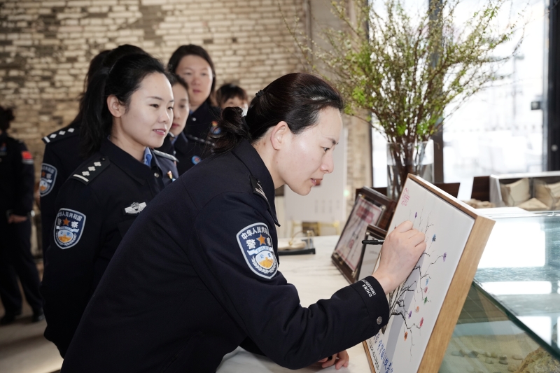 创造性地签到,打开美丽的章节。活动开始时,一场独特的创意签到仪式点燃了现场的气氛。女警用五颜六色的印泥在“签到树”上按下指纹,五颜六色的指纹变成一片叶子,一起“生长”出一棵枝叶繁茂、生机勃勃的大树,代表着女警“她的力量”的蓬勃发展和团结凝聚。每个人都拿出手机拍照,记录下这个充满仪式感的时刻,为活动拉开了一个快乐的序幕。