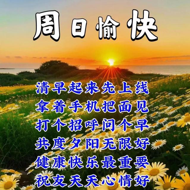 每个星期天都有美好的时光,我想念更长的时间;想和朋友聚一聚,可惜彼此分开;深情祝福,表达心中的愿望。祝你周日快乐,每天快乐!早上好!