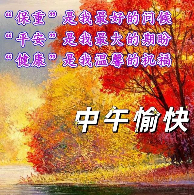 一句问候,风吹云散,情不散,一句祝福,岁月运转,心不变,一个愿望,只要你好,就喜欢,送上真挚的祝福,轻松的生活,幸福的陪伴,最后祝你:早上舒服,外出愉快,回家温暖,每天快乐。午安!