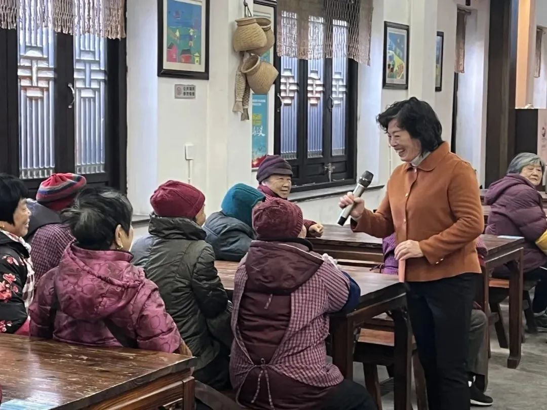 除村庄外,故事队还经常到周边商圈、广场、茶室、养老院等进行讲座,深受大家的喜爱。高月华说,山阳镇有写故事、讲故事、听故事60多年的文化传统。为了进一步继承和发展山阳故事,山阳镇社区学校于2018年成立了“常青树”故事团队,用方言讲述红色故事,用“地方口音”传递“党音”。他是第一批参加故事团队的成员。他说:“我试着用金山话来讲述这些红色的故事,触动很大,代入感更强。但愿能以讲故事的形式发扬红色精神,传承红色基因。”