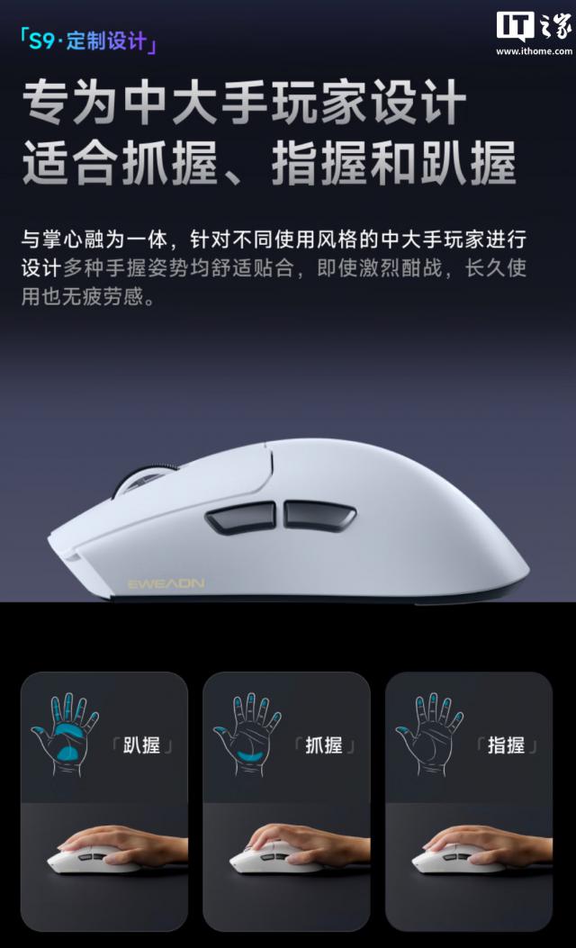 据报道,该系列鼠标适用于中大型手型,并选择纳米冰皮涂层。目前,这款“红焰红”版本正在配置金色侧面。 Logo,采用金属红色喷砂技术,在光线下具有一定的质感,整体重量约为 63 克,鼠标配 500 毫安时电池。官方称之为指握、趴握、抓握。