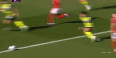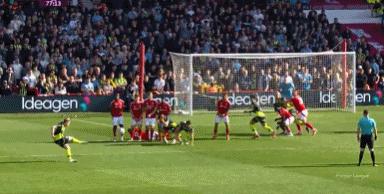 吉布斯 - 面对格瓦迪奥尔的单防,怀特送出了精确的斜长传,奥多伊得球,雷区右肋发射,足球跃入近角,森林 1-0 领先!