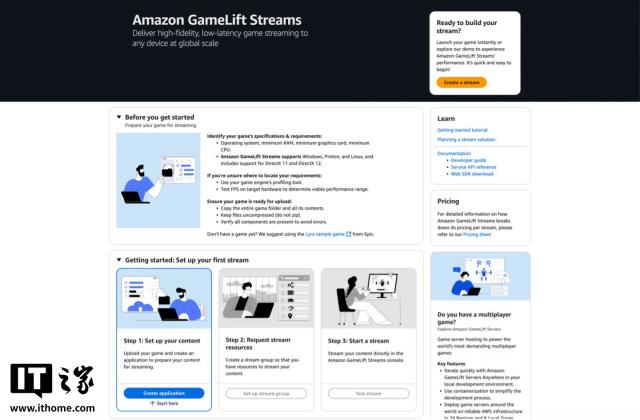 IT 世家 3 月 8 亚马逊日消息 AWS 发表文件,宣布推出 Amazon GameLift Streams 云游戏串流部署方案,旨在帮助游戏开发者更方便地将游戏部署到云端 GPU 环境,让玩家可以用手机平板跨平台即时游玩。 PC 云游戏。